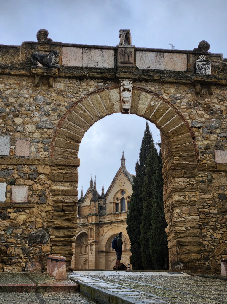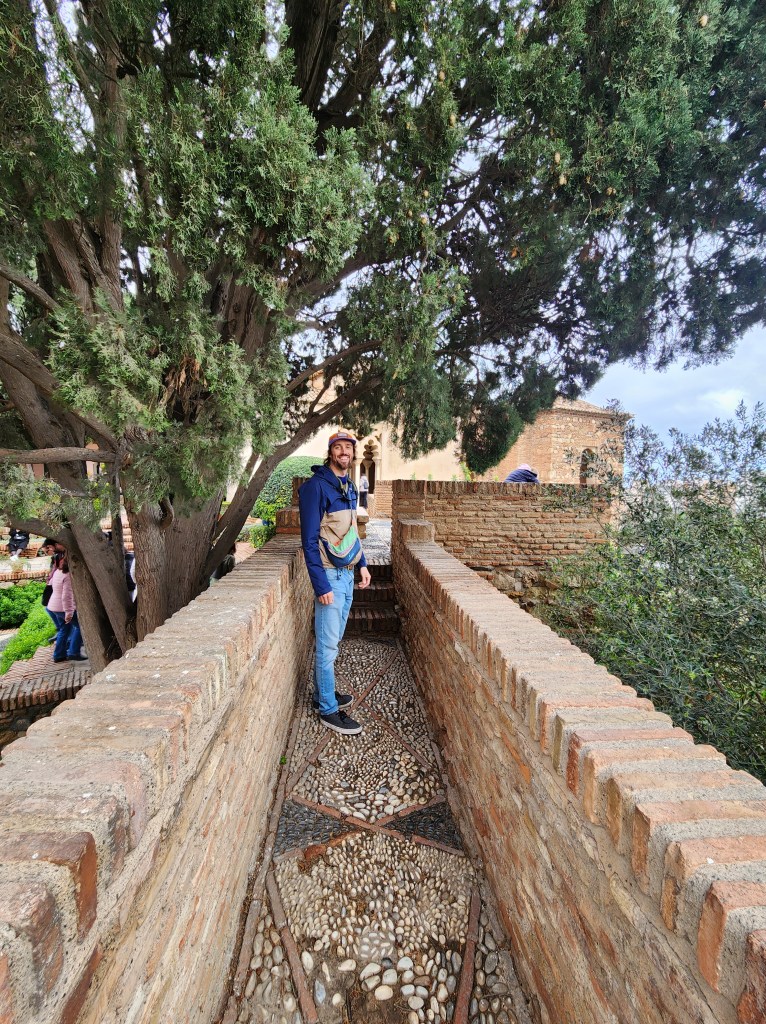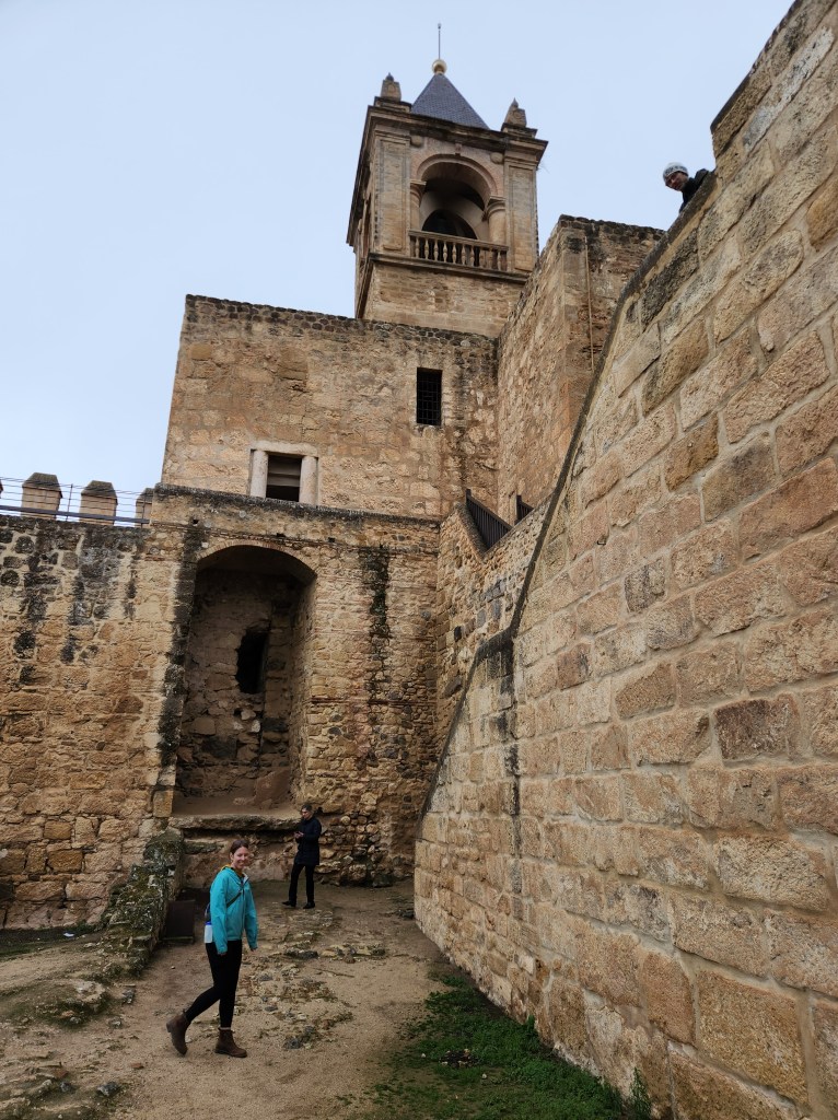 It looked like there had once been more structures, but the decaying walls were now more of an open plaza. This alcazaba was not as well preserved as the one in Málaga. The second tier was a large garden of cedar, cypress, and hedgerows, again blurring the line between abandonded fort and inhabited castle. The outer walls and towers were well preserved, which drew us into the dim narrow passageways. We took in the misty view from the bell tower, ducked through what felt like holding cells, and of course saw more Roman walls the Alcazaba was built upon. Every little nook filled me with awe.