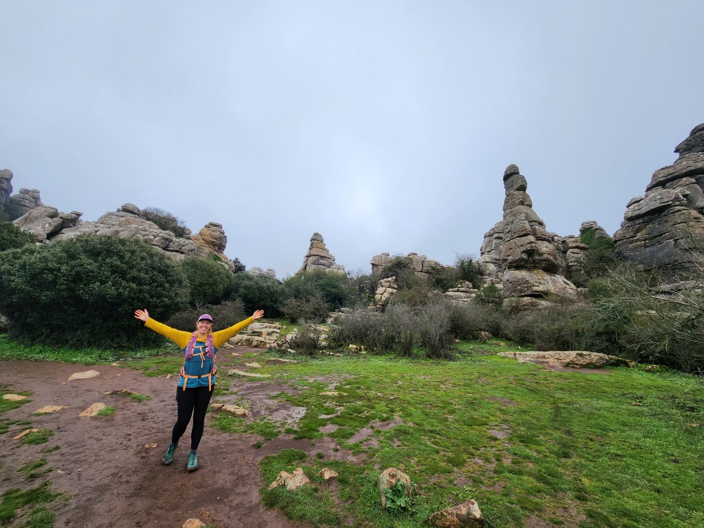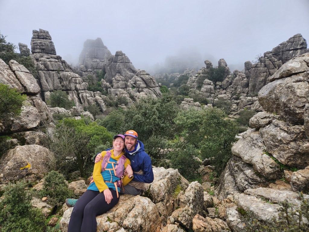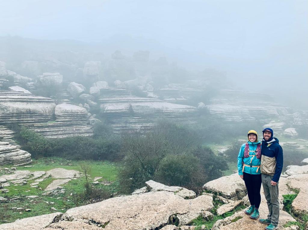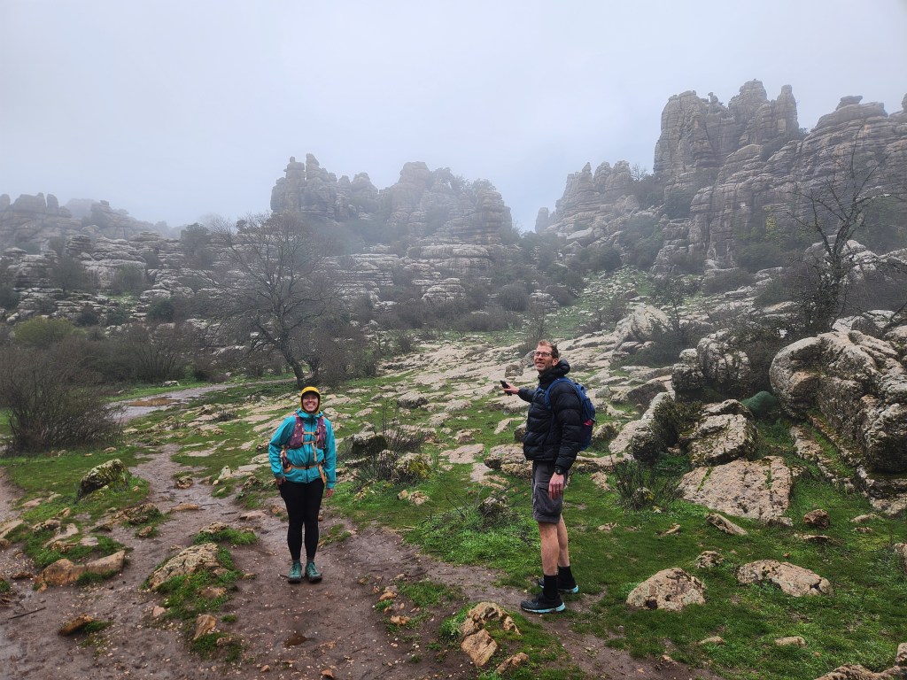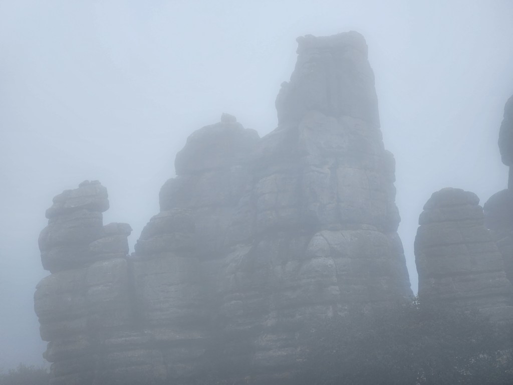 After a bit of a late start, Jake, Maggie, and I hit the road for Antequera. The weather had turned again and a steady rain fell for most of the drive. We decided to get out for a hike first in El Torcal de Antequera, a lofty limestone mesa with curious rock formations. We entered the clouds as we drove up the side of the mountain. On the way up, we could see hints of strange rocks off the side of the road.