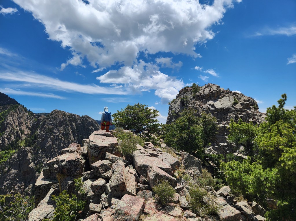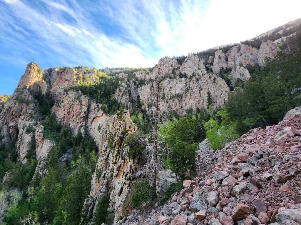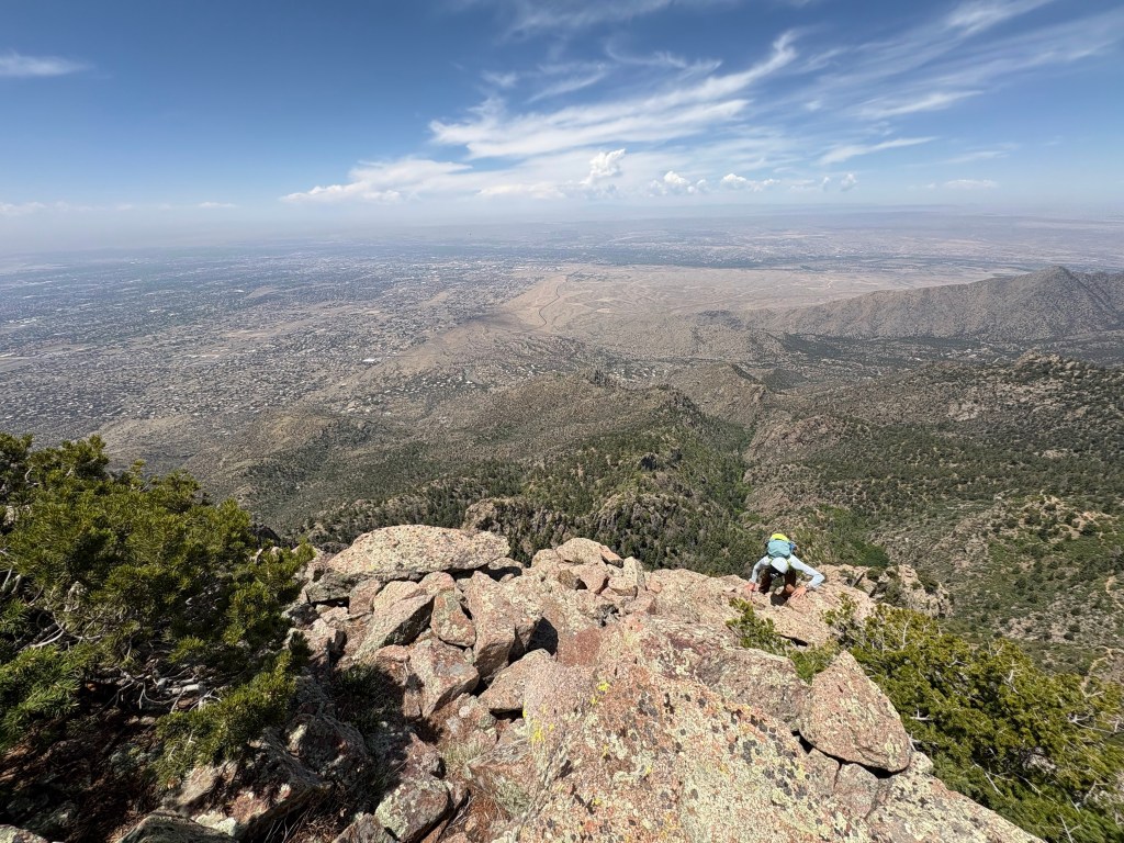 Ryan and I reached the west summit where we slowly got a view of the final boss. The true summit is guarded by a steep blocky headwall. A narrow gully in the rock gave us passage with ample solid holds. It was an exciting finish! We yelled a hearty, “CUMBRE!” which echoed off of the walls opposite La Luz canyon.