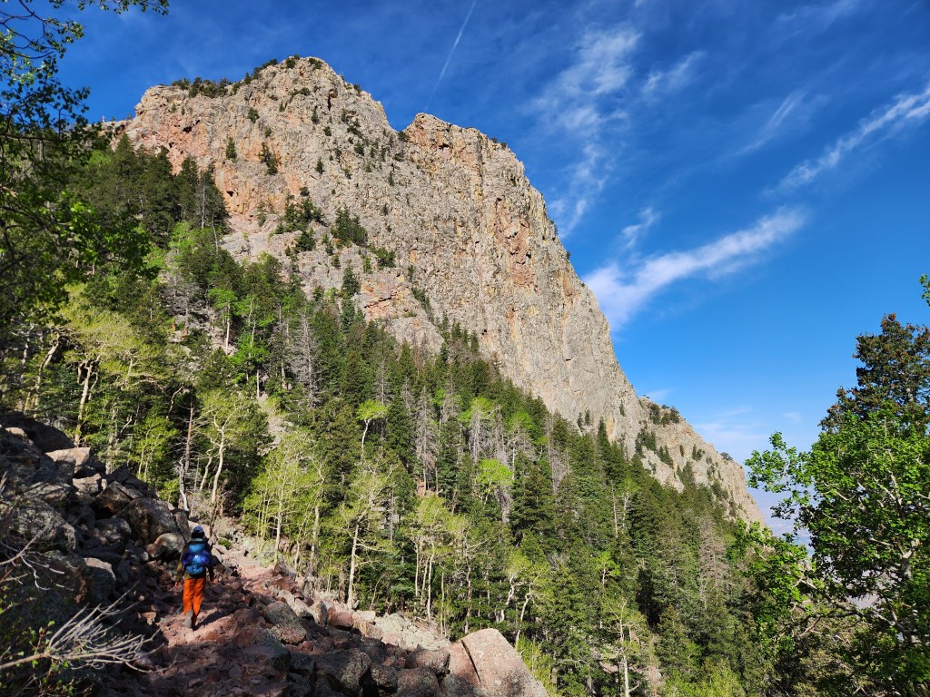 Starting from the top of the mountains, the approach is actually down the La Luz trail, about 2.5 miles and 1,500 feet of descent. The morning light in La Luz canyon was impeccable. There’s so much inspiring rock there! As we dropped The Thumb only grew bigger before us until we were craning out necks to look up.