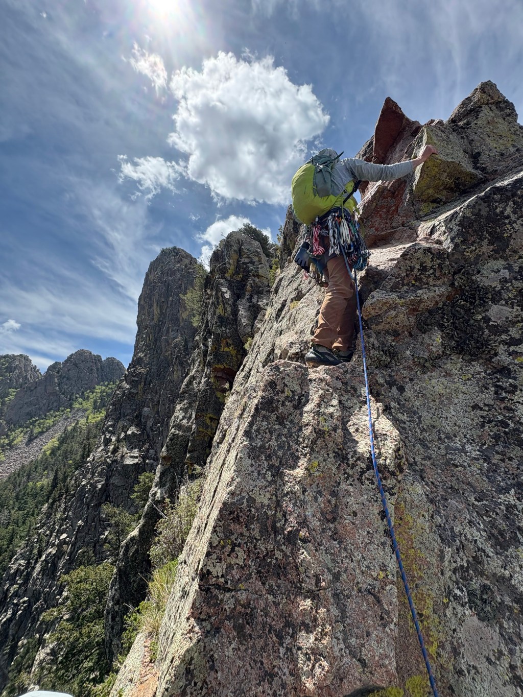 The Sandia Mountains have a lot impressive granite fins and spires packed into a small mountain range. I remember hiking the La Luz trail for the first time in 2020 and seeing climbers dot the towering walls all around. At the time, I never really thought I would be one of those climbers, questing up alpine faces. My stoke and determination has finally overcome that self doubt. I can now say with confidence I’m a Sandia climber.
