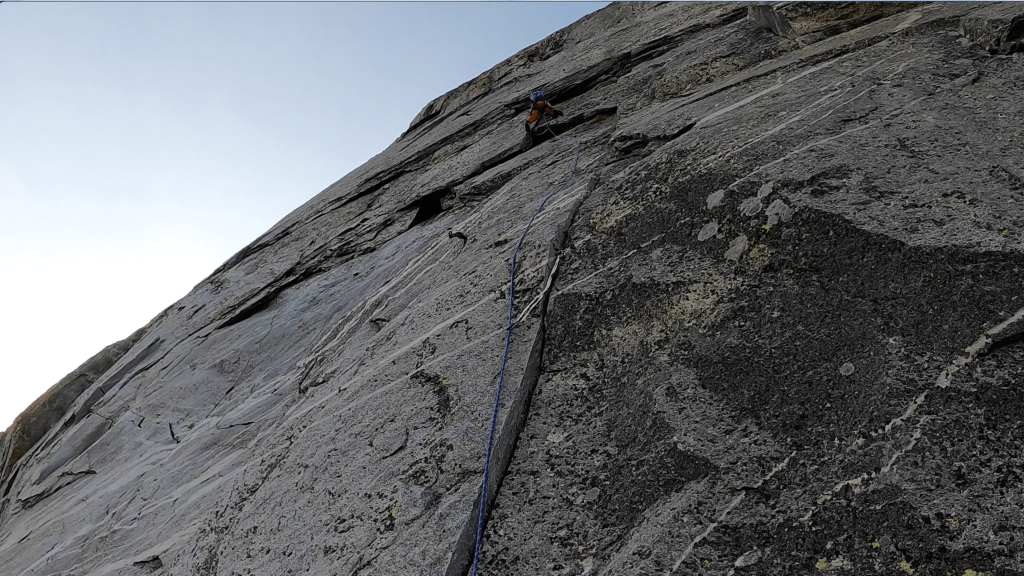 At the time of this trip, I was a solid 5.10+ sport climber with, by most measures, a modest amount of trad climbing experience. On paper this seemed like a challenging yet approachable objective. If the first pitch was too difficult, we could either bail or “French free” through the cruxes, and from there it ought to be totally doable. Strictly speaking, we were successful, but this climb pushed me to my psychological limits. I recognize that this trip report may be a bit dramatic. Forgive the hyperbole, this is just my effort to convey what I was feeling on this day.