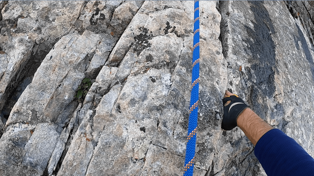 I was wearing my crack gloves in the wild for the first time and boy was I stoked to have them. There were so many hand and fist jams on the first pitch alone. I wound up wearing the crack gloves all day, and it was so worth it. I jammed my way up the roof crack, fueled by top rope confidence and the knowledge that a great hold was waiting for me above. I kept up the momentum and cruised through the upper finger crack crux. I would describe it as off-finger width – too narrow for full hand jams, but too wide for finger locks, at least with my skinny fingers. Ryan was impressed with my crack climbing ability, which is thanks to many laps on the crack trainer at our local gym.