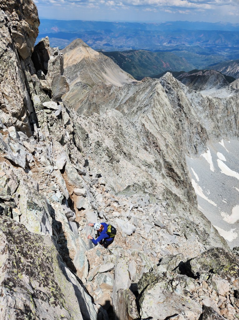 Capitol Peak is widely regarded as Colorado’s hardest 14er. After summiting this beautiful and horrifying mountain and coming safely back to earth, I finally see why it holds that superlative. I wish this was a simple tale of taking the standard route, “only” a Class 4 scramble, but my friend Ryan and I chose to climb Capitol the harder way – a technical route up the northwest buttress.